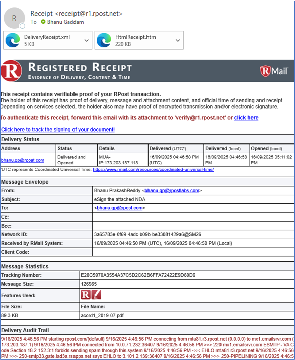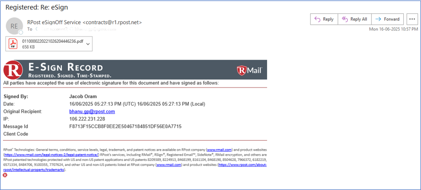Note: RPost One for Windows OS (free of charge) seamlessly extends eSignature capabilities to any web or desktop application.